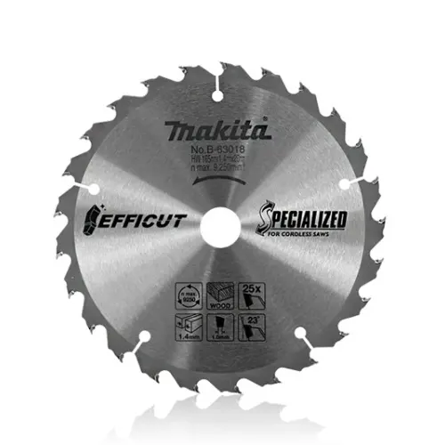 Makita B-63018 شفرة منشار دائري 6-1 / 4 بوصة ، 165 مم × 20 مم × 25 سن ، للخشب
