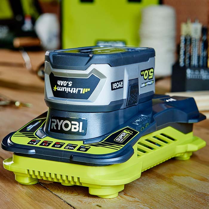 يشحن بطارية ريوبي 5.0Ah خلال ساعة واحدة فقط لتقليل وقت التوقف.