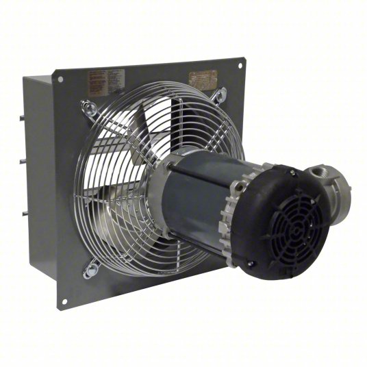 • These fans feature an explosion-proof motor and are rated for use in areas where combustible dust or certain flammable gases or vapors are present.