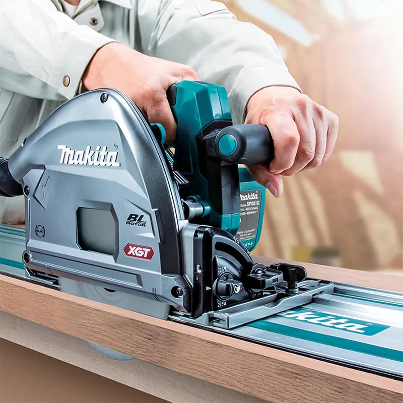 Split in 4 payments of The Makita SP001GZ02 is a 165mm 40V Max XGT Carbonless Cordless Cut-Off Saw. Is an excellent addition for carpenters and kitchen mechanics, especially when access to mains power is not guaranteed. Compatible with existing Makita guide rails, this cordless cut-off saw enables straight, clean cuts with ease. Positive stops at commonly used bevel angles allow you to work quickly and efficiently. The blade cover has a blade position mark to grasp the cutting position easily and safely. By using a long ruler (sold separately), SP001GZ finishes cutting work of various kinds of wood with high accuracy by aligning the ruler with the chalk line and placing it on the ruler rail. In addition, Next Generation Technology, Extreme Protection Technology, Auto Start Wireless System, Soft Start, and Dust Collecting.