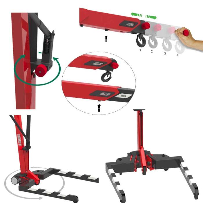 - Window to show safe working load at the selected position. push button for quick change of position of the extendible jib.