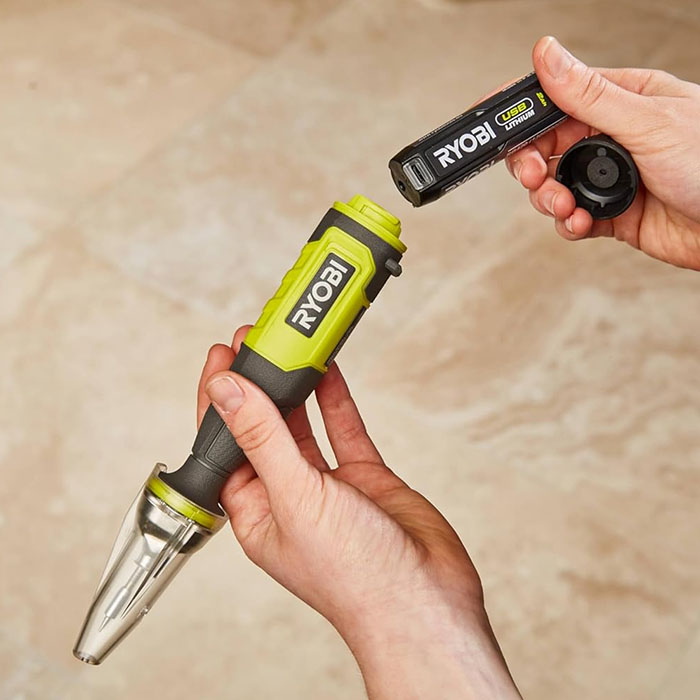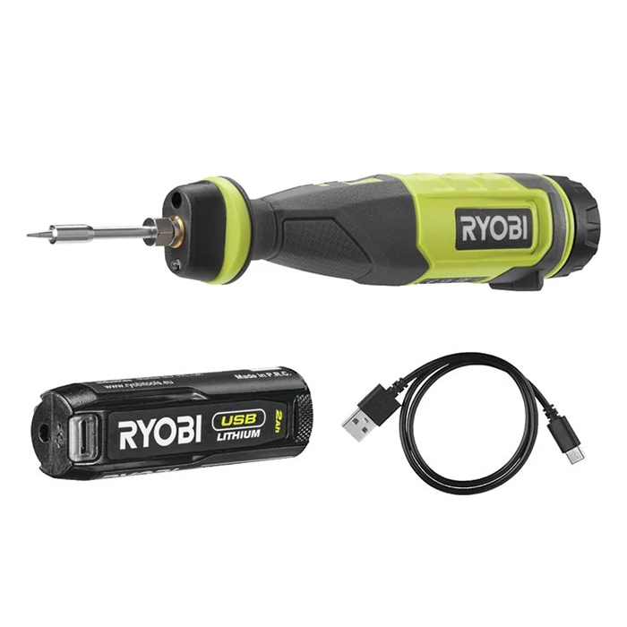 Powered by a rechargeable 4V USB Lithium battery, offering consistent performance and compatibility across Ryobi USB Lithium tools.