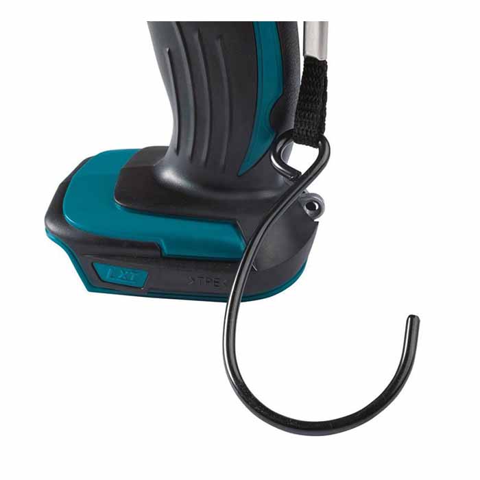 A metal hang-hook provides added convenience. The flashlight has a slim, compact design at 0.26Kg. The fast-charging Makita 18V LXT Lithium-Ion Battery delivers up to 23 hours of continuous illumination on a single charge (when using the 18V LXT Lithium-Ion 5.0Ah battery.