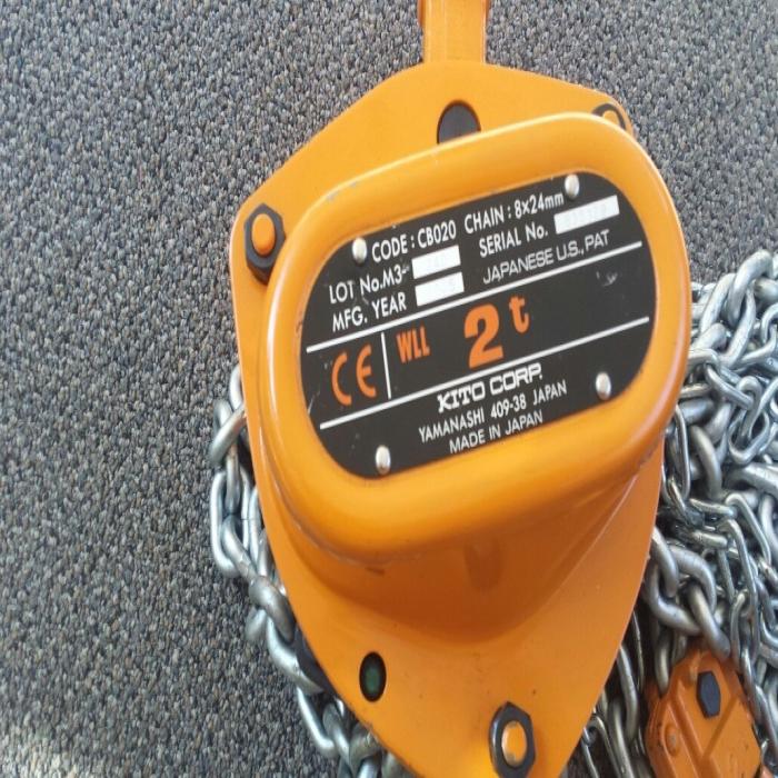 Split in 4 payments of CHAIN HOIST MANUAL from KITO,2.0TON X 3M LIFT - Double Pawl Spring Mechanism to further increase Sureness In case one pawl spring is damaged, the other maintains functions. This mechanism further increases sureness. - Sure and Reliable Braking Functions (Mechanical Brake) KITO's unique braking mechanism, which has a strong braking power, works instantly when operation is stopped and holds load securely. Moreover, it maintains stability and durability. Little manual power is needed and smooth operation is always obtained, especially when load is being lowered. - Stopper Prevents Excessive Lowering Stopper assembly prevents from excessive lowering of load and also keeps load chain from exiting if over lowered. When you feel a noticeable increase in pull force to lower load you may realize that you cannot lower load any further. - Ultra Strong Load Chain Load chains, the other component comprising heart of the chain hoist, are made of an exclusively developed, heat treated special steel alloy. Carefully selected special alloy steel is processed entirely at KITO's completely automated production facilities under the most stringent quality control standards. All of chains thus produced have a uniformly high breaking stress of 1000N/ mm (100kgf/mm). They have excellent quality including toughness and resistance to wear. - Hooks for Easy Work specially heat treated top and bottom hooks have enough strength and toughness for even hard job. The design of the bottom hook, with relatively large dimensions, makes it easy to stabilize load in proper position.
