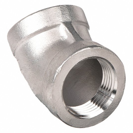 This GRAINGER APPROVED 45° elbow is designed with 304 stainless steel for good corrosion resistance.- Compatible with stainless steel Schedule 40 pipe- For use with air, water, oil, natural gas, and steam