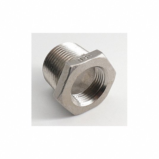 Grainger Approved 1/2 X 3/8 150 HB 316 Hex Bushing: 316 Stainless Steel, 1/2Inch x 3/8Inch Fitting Pipe Size, Male NPT x Female NPT, Overall Length 25 mm