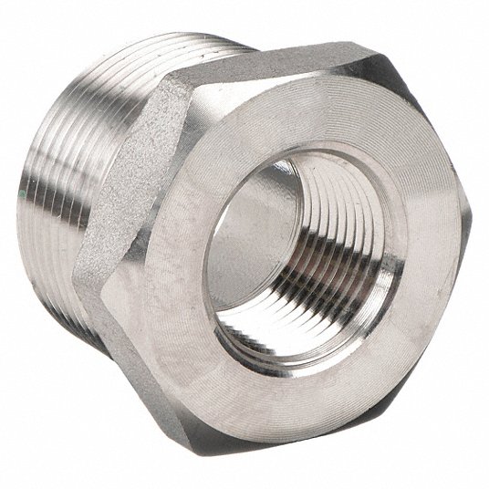 Grainger Approved 1RRU9 Hex Reducing Bushing: 1 1/2Inch x 1Inch Fitting Pipe Size, 304 Stainless Steel, Male NPT x Female NPT