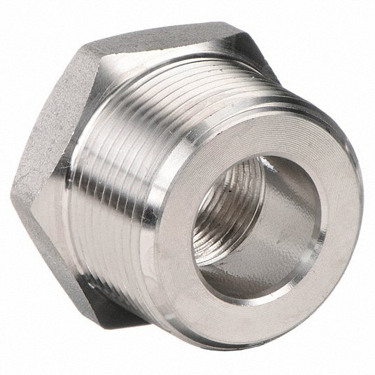 The 304 stainless steel construction for this GRAINGER APPROVED hex reducing bushing features a chromium nickel material that offers very good corrosion resistance.