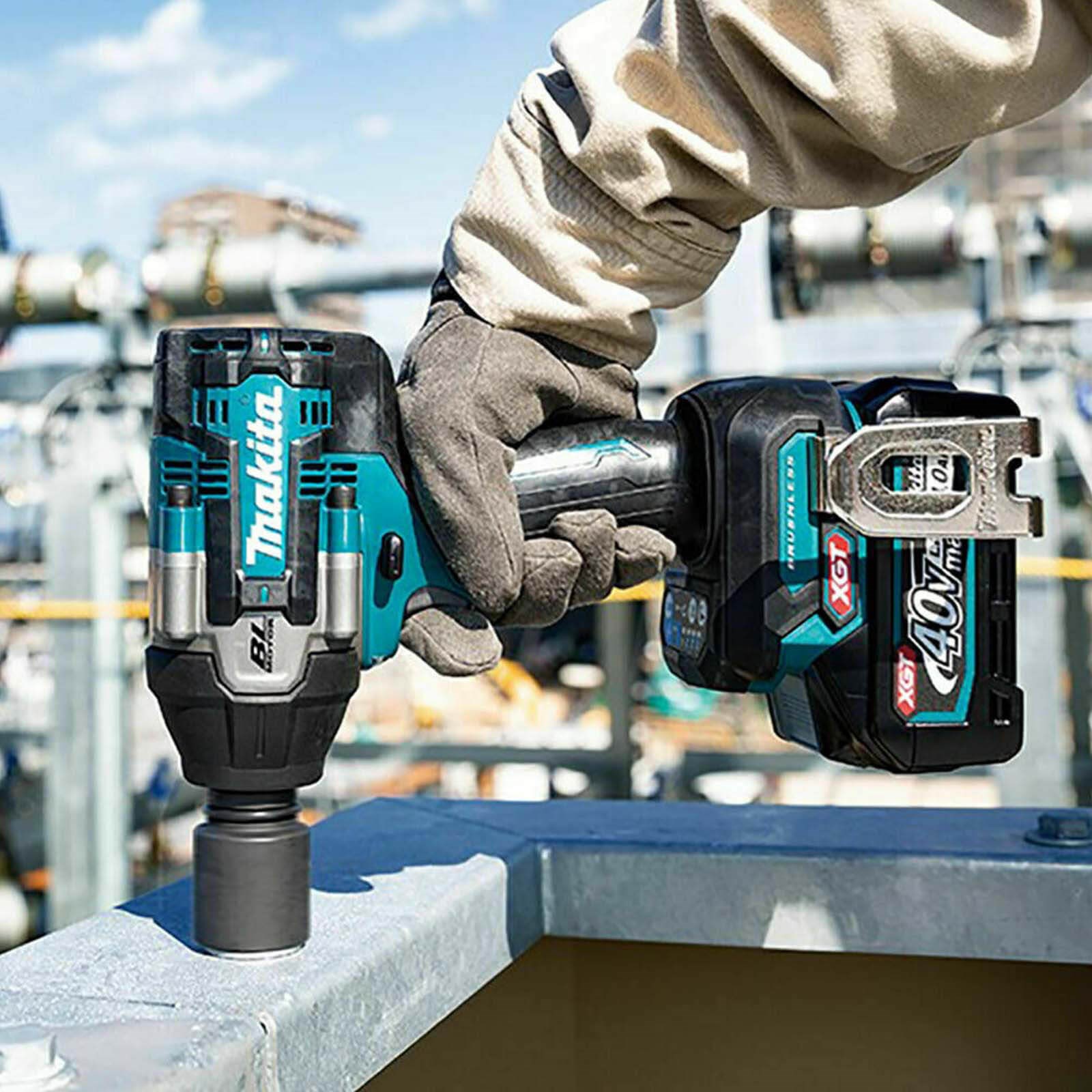 Split in 4 payments of The Makita TW008GZ is a Cordless Impact Wrench powered by a 40v Max XGT Li-Ion battery with a brushless motor that extends runtime while producing less heat. The Cordless Impact Wrench offers a 4-variable speed that provides the user with optimum control, controlled by a trigger, to deliver up to 2,900 ipm, 2,300 rpm, 760 Nm. Equipped with a socket that can be fixed with pin detent. This impact wrench also features an impressive range of user benefits as Built-in Job Light improves visibility, and an auto-stop system available both in forward/reverse rotation modes and forward and reverse rotation. The Makita TW008GZ is for a wide range of applications and is ideal in garage and engineering environments.