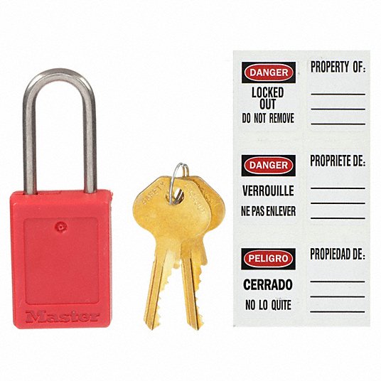 Padlocks in these sets are keyed different for lockout procedures. - They feature red bodies and are available in different sizes and in a variety of different materials.