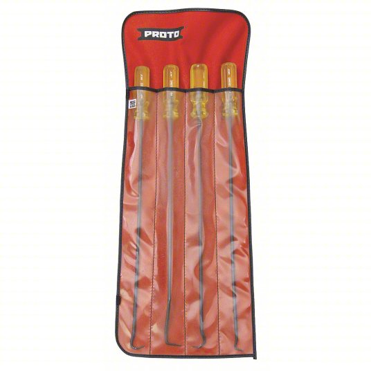 Split in 4 payments of The PROTO Extra Long Pick Set High Alloy Steel 20-1/2, 20-5/8, 20-7/8, 21 inch, J2389S (Set of 4 pcs) are essential and versatile devices designed to retrieve metallic objects from hard-to-reach or hazardous areas. These precision-engineered pick-up tools are invaluable additions to the toolkit of professionals, mechanics, technicians, and DIY enthusiasts, offering precision, durability, and adaptability for a wide range of tasks that involve retrieving or positioning metallic items. Magnetic pick-up tools are instrumental in situations where it's challenging to reach small metal objects, like screws, nuts, bolts, or other metallic debris, from tight spaces, machinery, or even places with safety concerns, such as dropped items near moving parts.