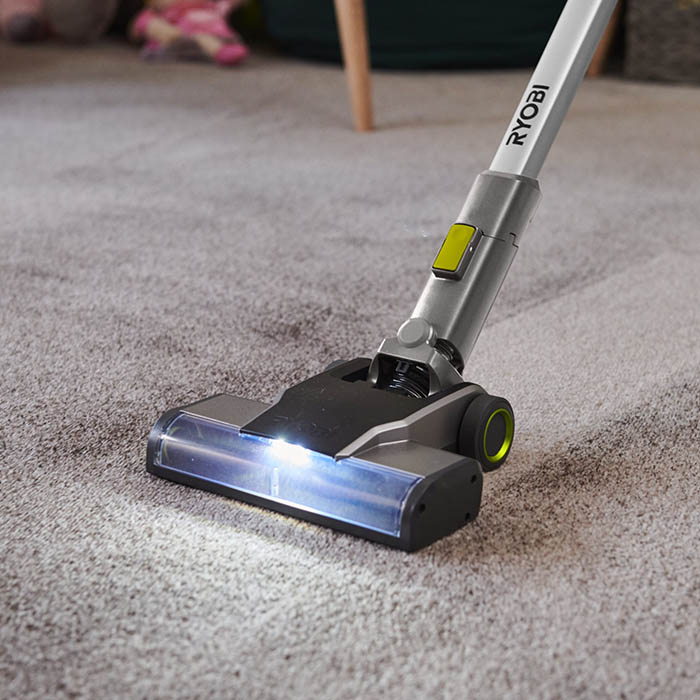 The 24 cm motorised brush agitates dirt from carpets while the LED light reveals hidden dust under furniture.
