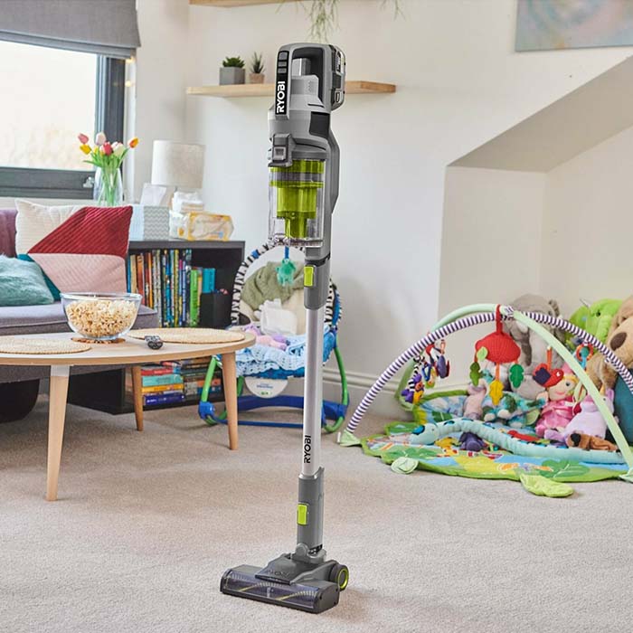 Split in 4 payments of The Ryobi RSVS18-0 Cordless Floor Vacuum Cleaner delivers powerful, hygienic, and convenient cleaning without the limitations of cords. Designed as part of the Ryobi 18V ONE+™ platform, this lightweight and self-standing vacuum provides complete freedom of movement for whole-house cleaning. With 30 Air Watts of suction power and 820 l/min airflow, it efficiently removes dust, debris, and allergens from both hard floors and low-profile carpets. The advanced dual-cyclonic filtration system captures up to 99.5% of particles, while the versatile 3-in-1 design allows quick switching between floor, handheld, and extended-reach cleaning. The RSVS18-0 is an ideal cordless solution for modern homes and workspaces.