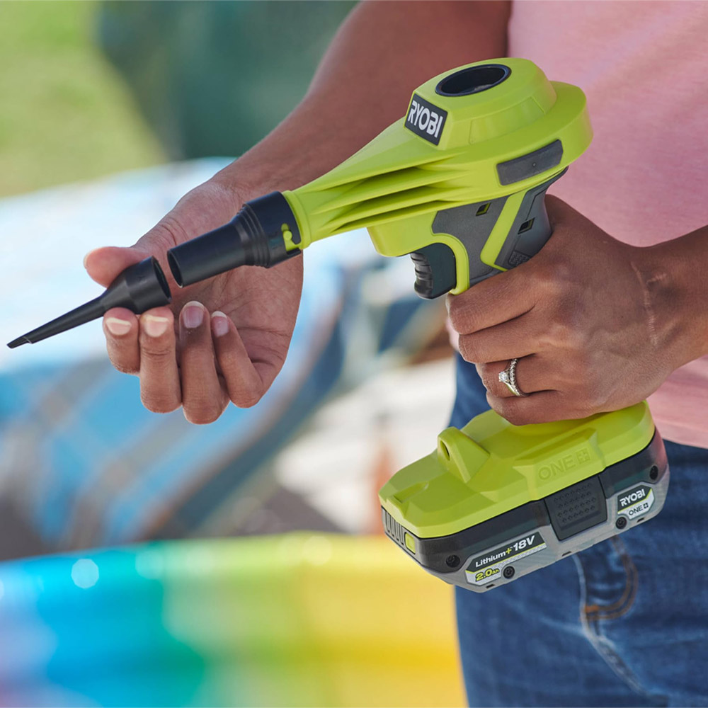 Split in 4 payments of Ryobi ONE+™ Cordless High Volume Inflator, RVI18-0, is designed to deliver fast airflow for inflating and deflating large items with ease. With an airflow rate of up to 510 litres per minute, this compact tool is ideal for quickly inflating items such as air mattresses and paddling pools. The ONE+™ Cordless High Volume Inflator also features a deflation function, allowing users to remove air efficiently for storage purposes. Its versatility extends further as it can be used as a workshop blower for clearing surfaces during projects. Combined with multiple nozzle options and cordless convenience, it provides a practical solution for everyday and outdoor use.
