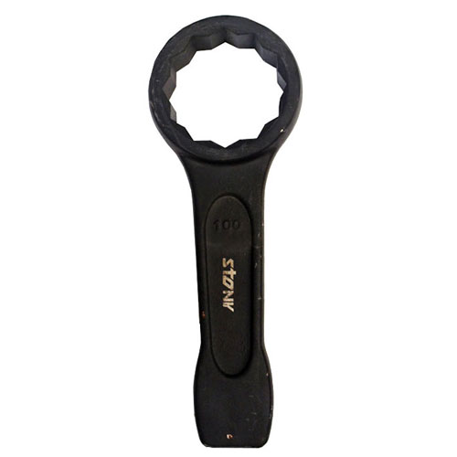 Stony specialized thick, short, stocky wrench with a block end to the handle specifically designed for use with a hammer, enabling one to impart great force.