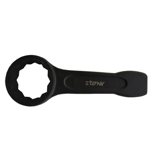 Stony specialized thick, short, stocky wrench with a block end to the handle specifically designed for use with a hammer, enabling one to impart great force.