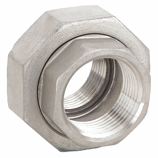 Grainger Approved Union, Material 304 Stainless Steel, 1/2Inch x 1/2Inch Fitting Pipe Size, Female NPT x Female NPT, Class 3000